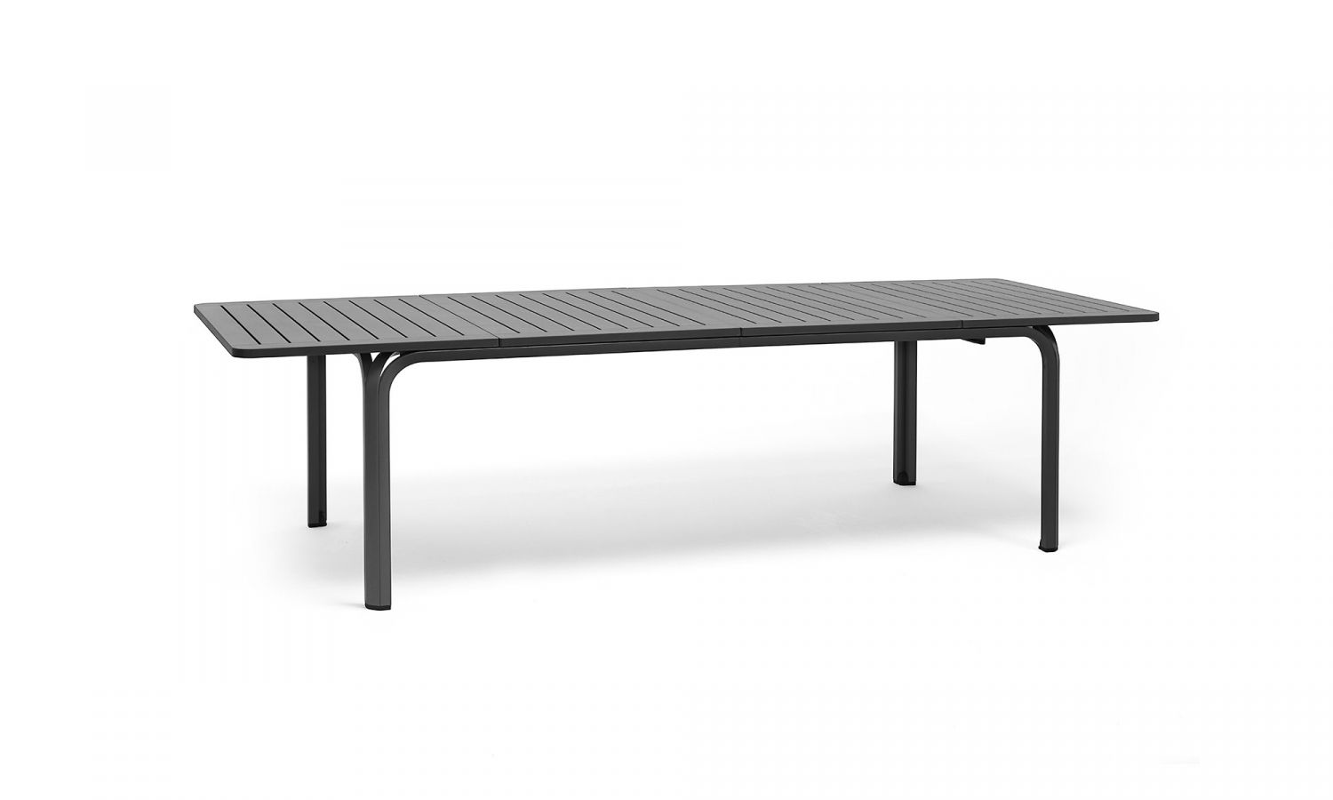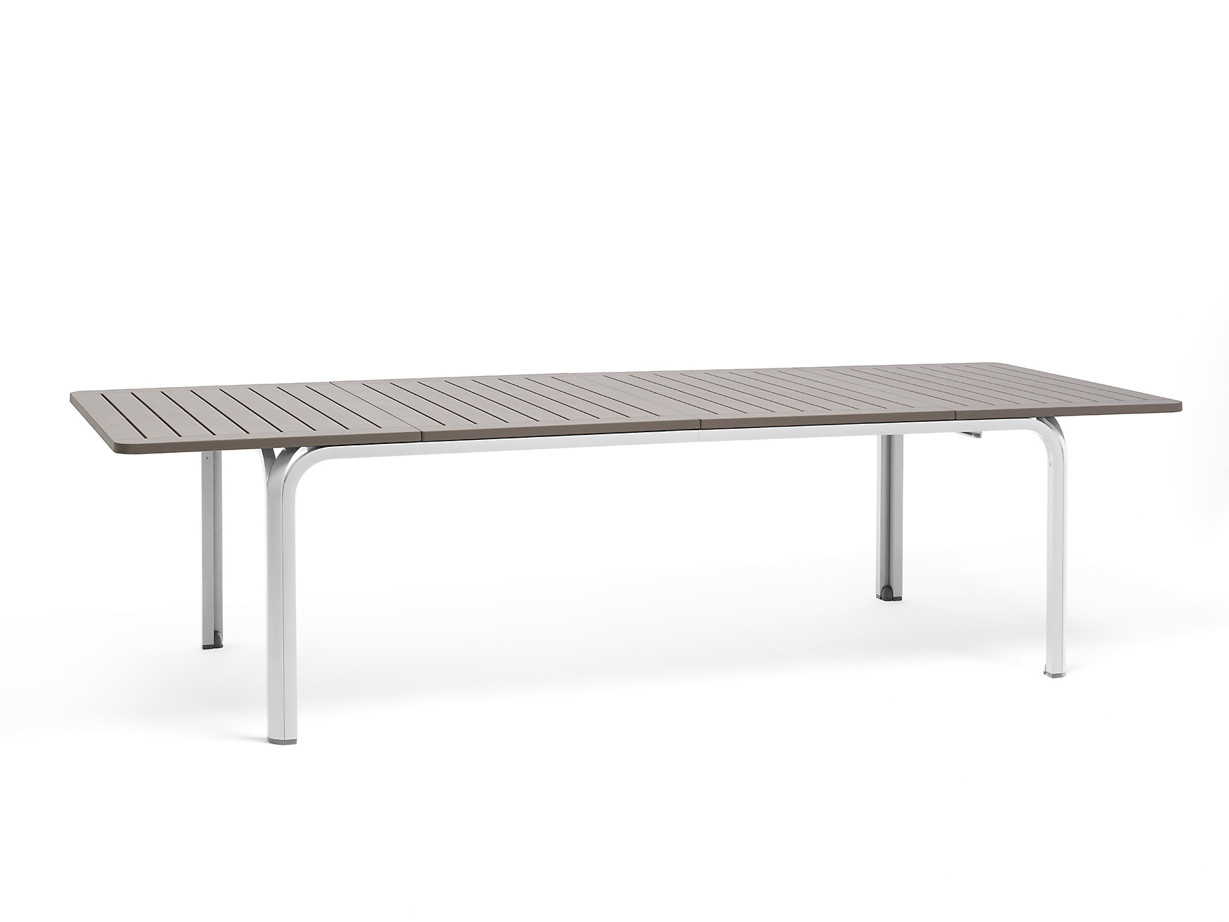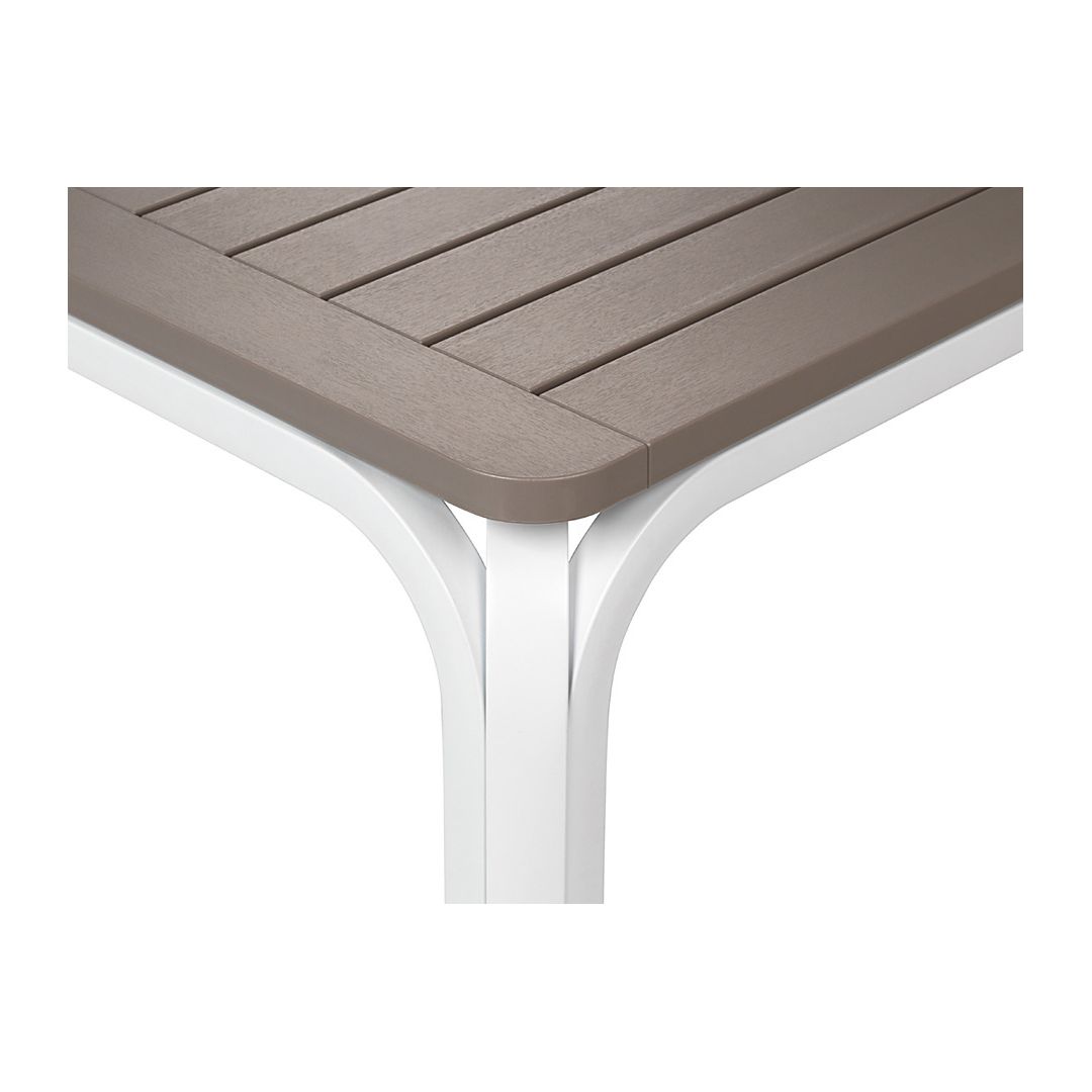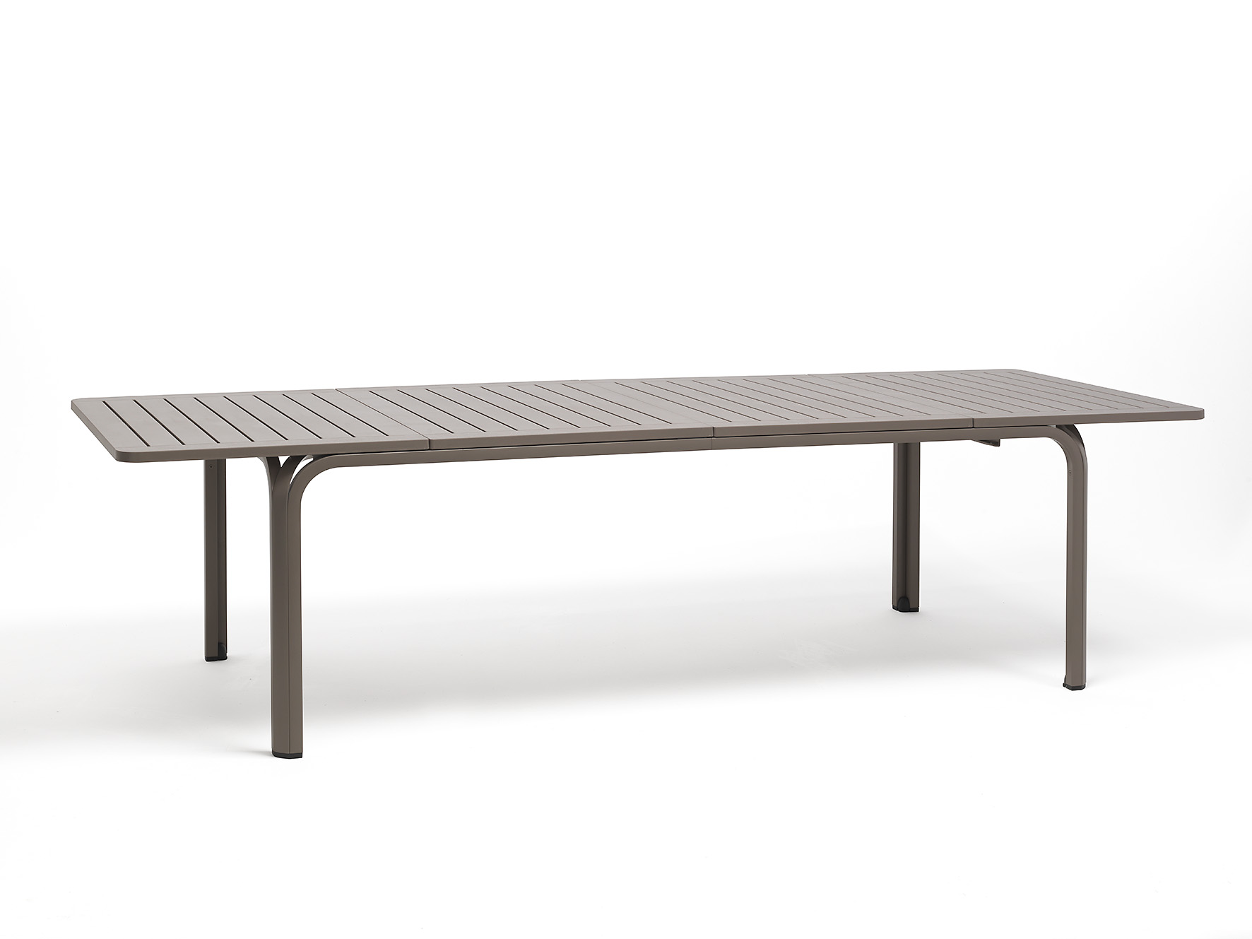 Fabricada en resina con fibra de vidrio, la mesa Rio se extiende fácilmente de 140 a 210 cm. Su sistema de extensión es práctico y discreto: la pieza extensible se guarda por debajo del tablero y se coloca de forma sencilla, deslizándola hacia el extremo y ajustándola mediante trabas de sujeción que garantizan firmeza y estabilidad.