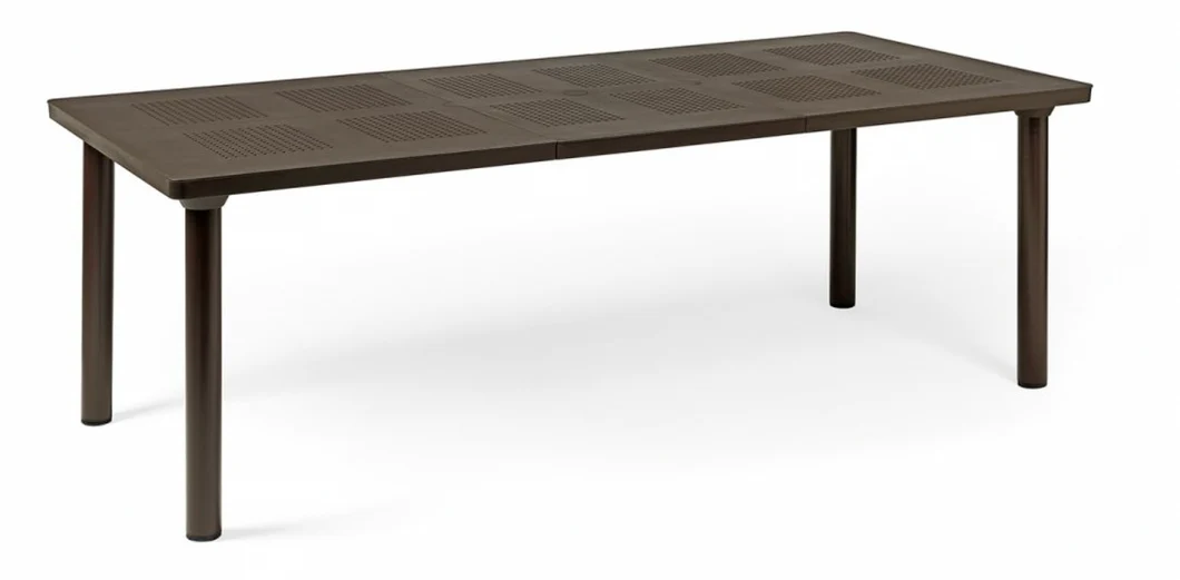 Mesa extensible de resina con fibra de vidrio y patas de aluminio