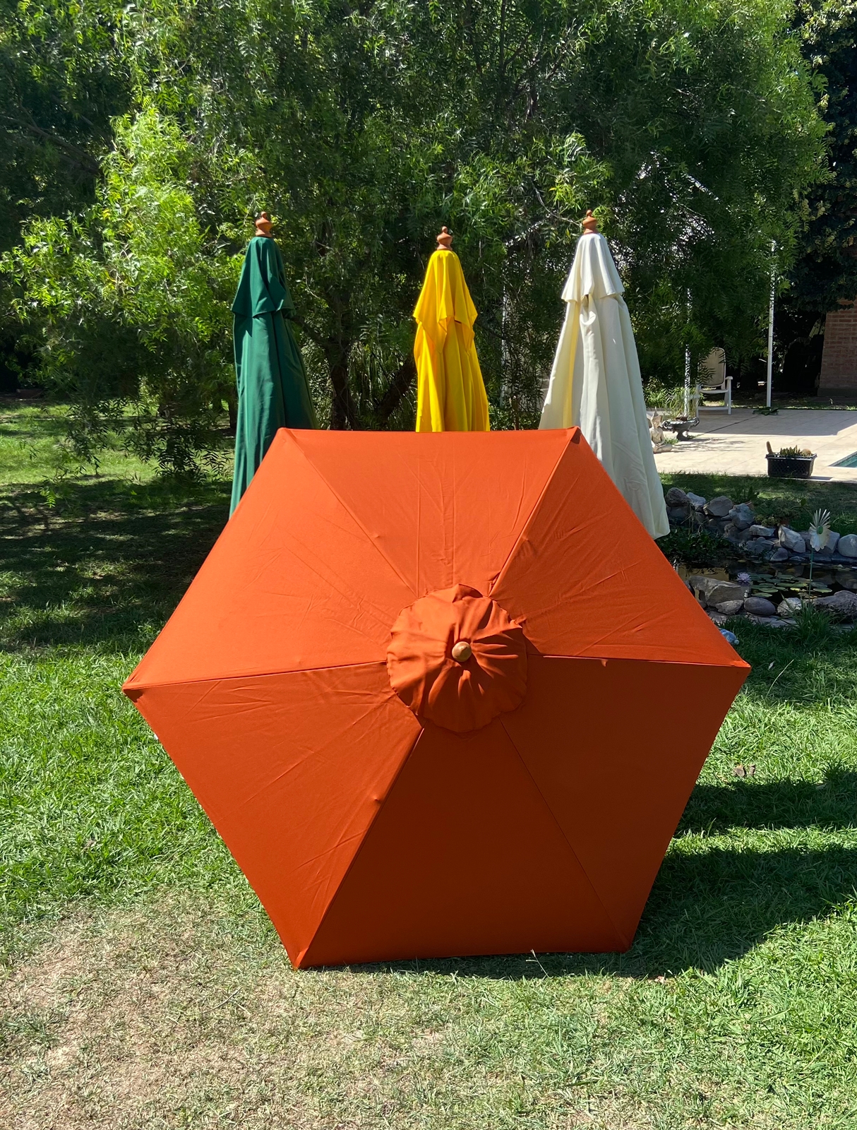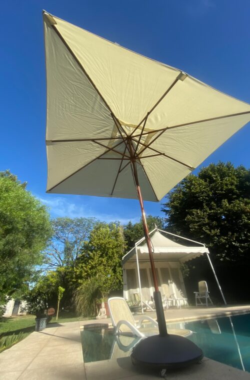Estructura en madera con apertura y cierre con soga Lona de Poliéster acrílico.