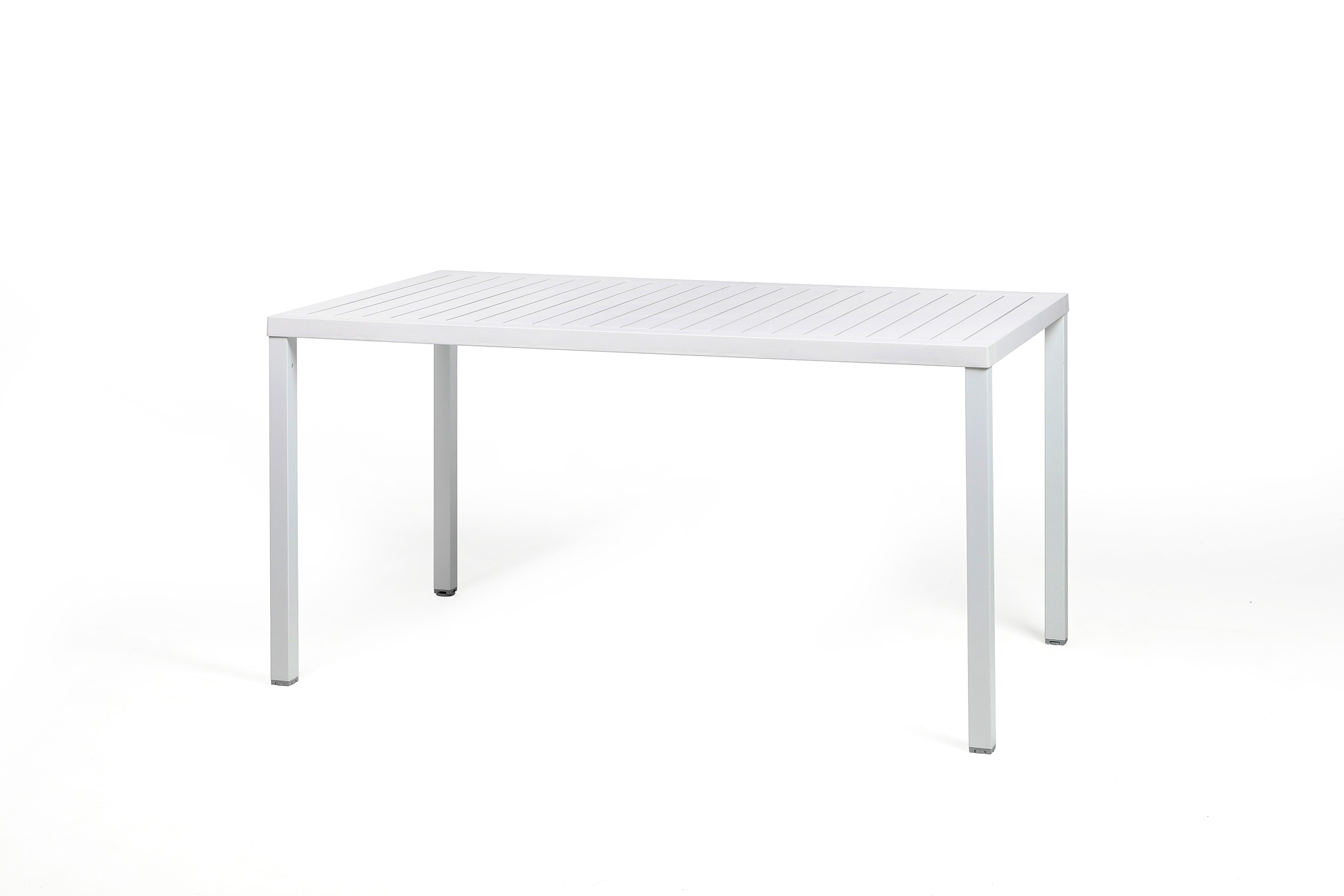 Mesa de 140x80 resistente y versátil. Ideal para balcones o restaurantes. Está fabricada en resina con fibra de vidrio y cuenta con patas de aluminio que garantizan durabilidad y estabilidad.