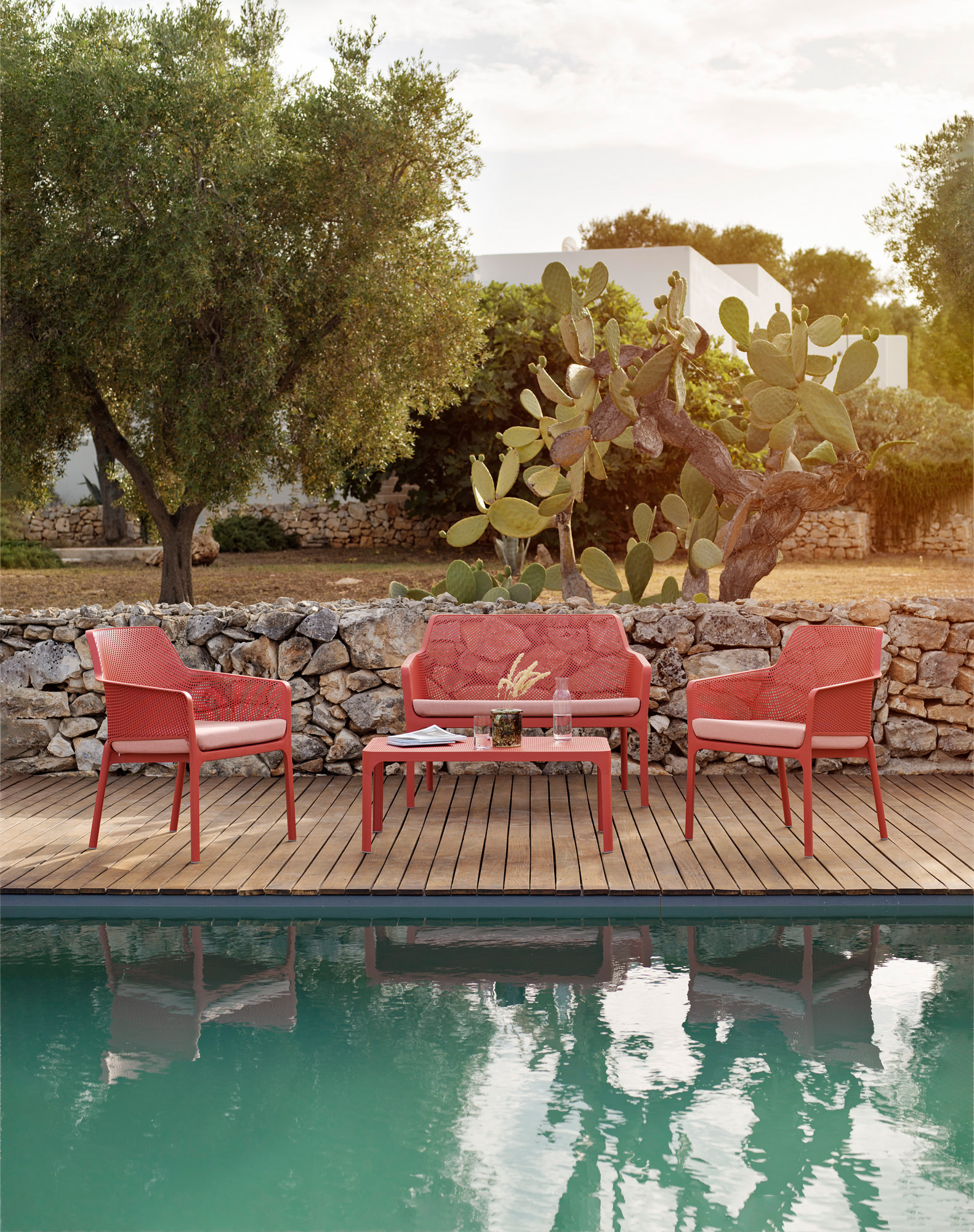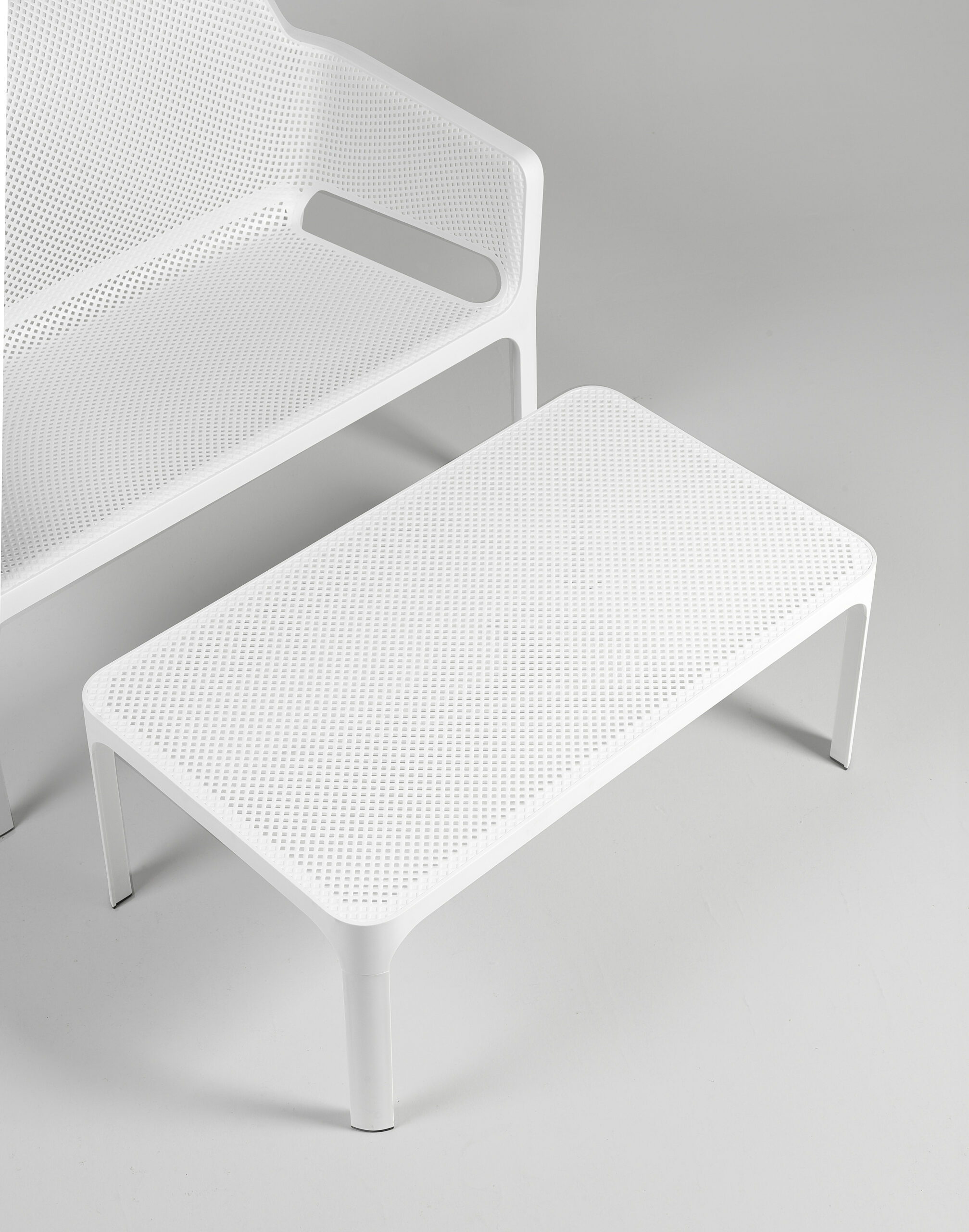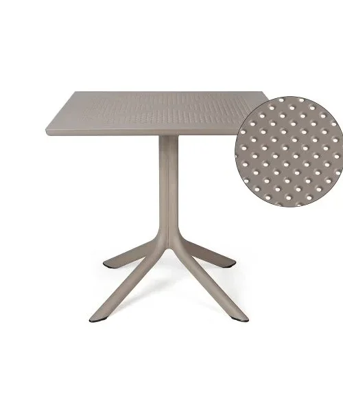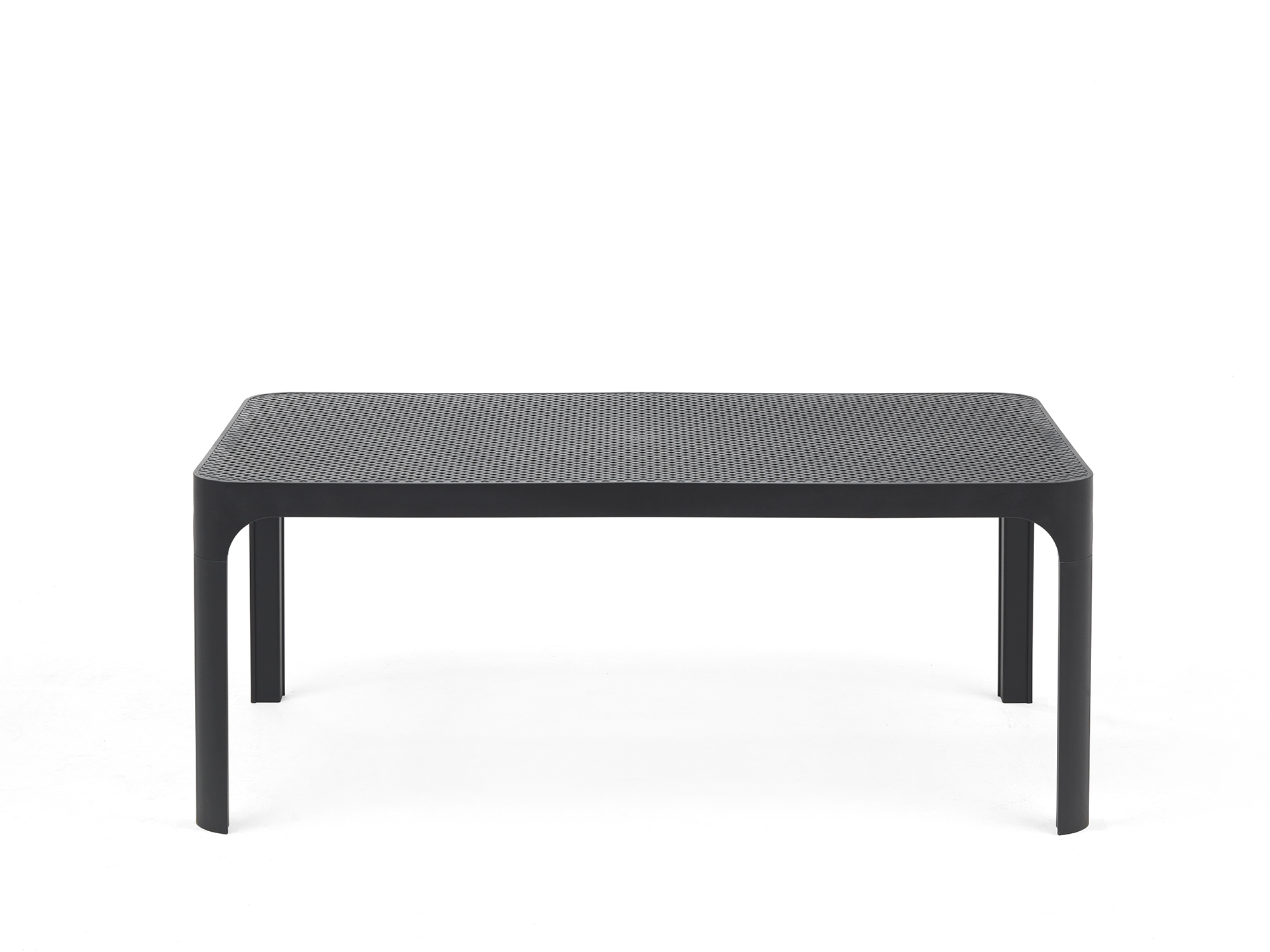Diseñada especialmente para uso en exteriores, esta mesa combina resistencia y estilo con un detalle de sustracciones en su superficie que aporta un diseño distintivo. Fabricada en resina reforzada con fibra de vidrio, cuenta con tratamiento anti-UV que preserva los tonos originales hasta por 15 años, incluso bajo exposición constante al sol.