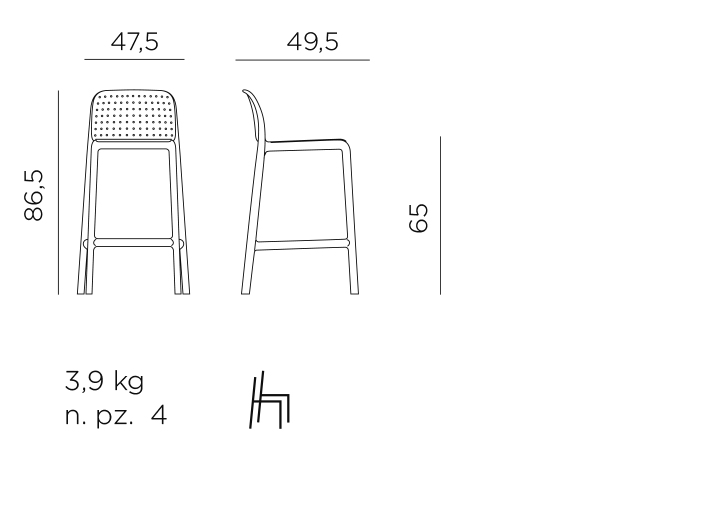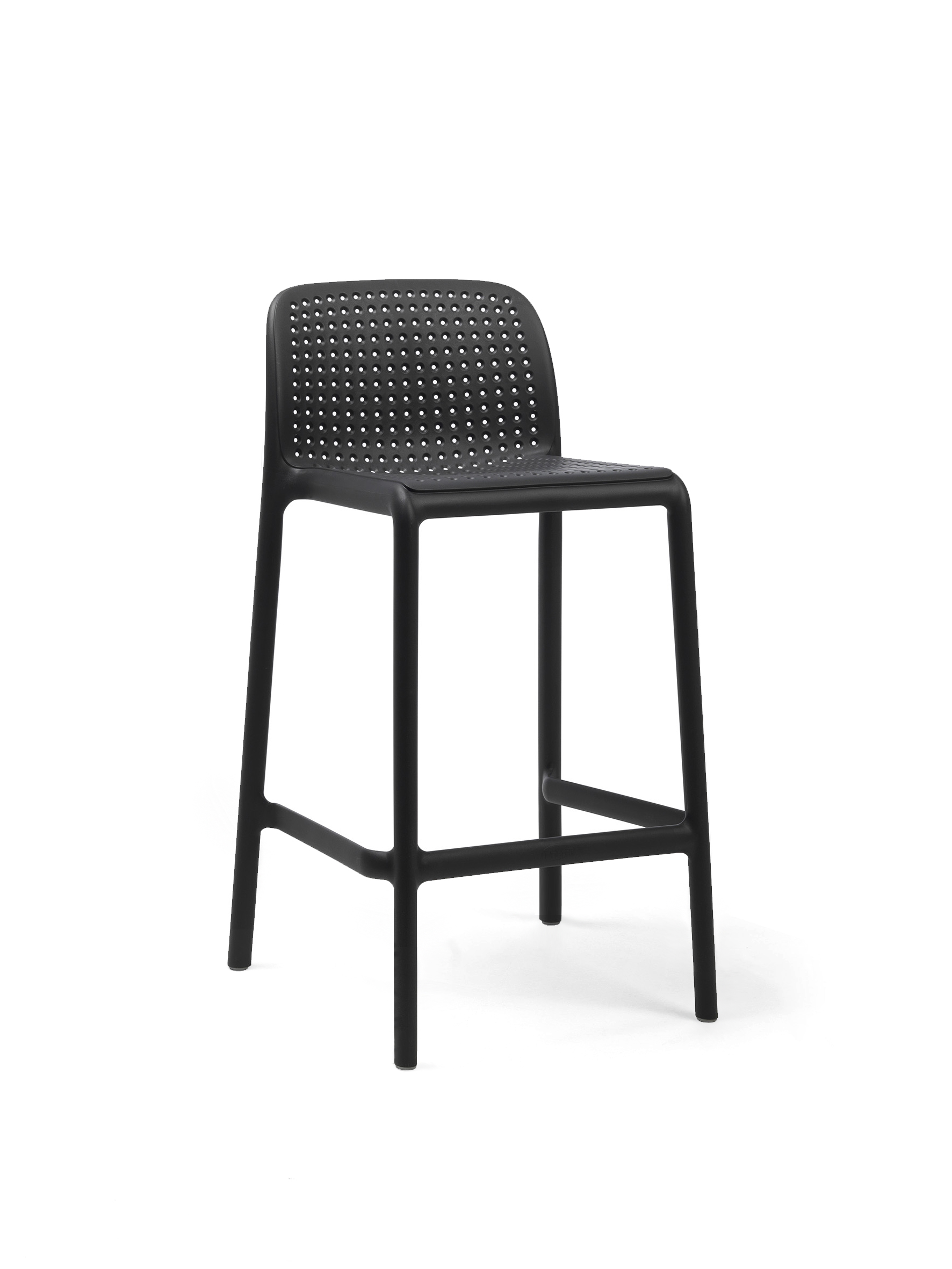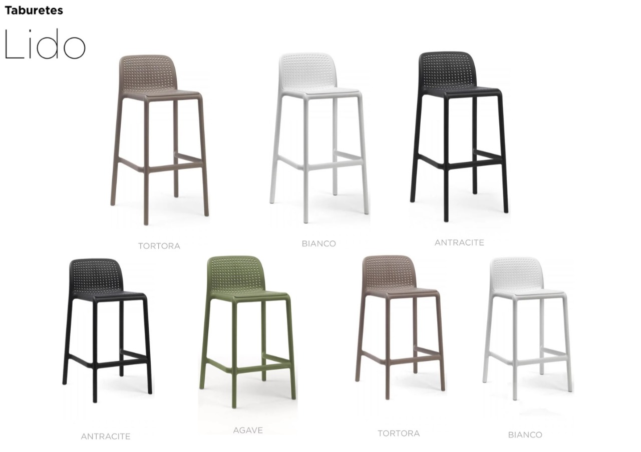 Taburete apilable disponible en dos alturas: 65 cm Mini y 76 cm Standard. Fabricado en resina con fibra de vidrio, este modelo combina resistencia, diseño y funcionalidad.